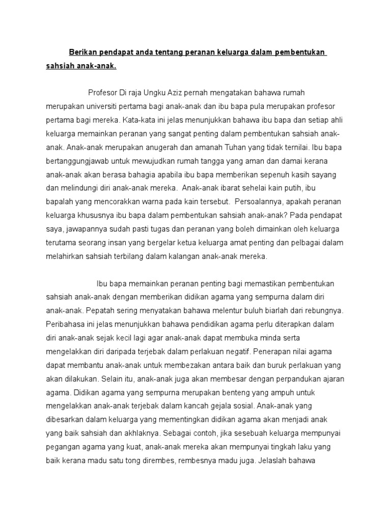 Keluarga memainkan peranan penting dalam mencorakkan kehidupan anak-anak. Contoh karangan deskripsi diri sendiri Diriku. Peranan Ibu Bapa dalam Melahirkan Keluarga Bahagia.